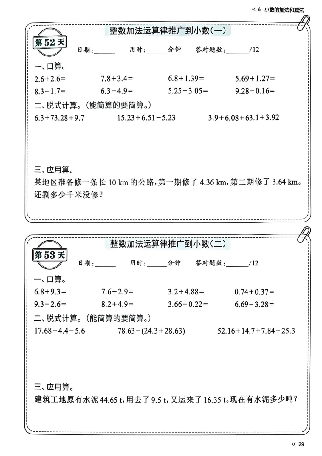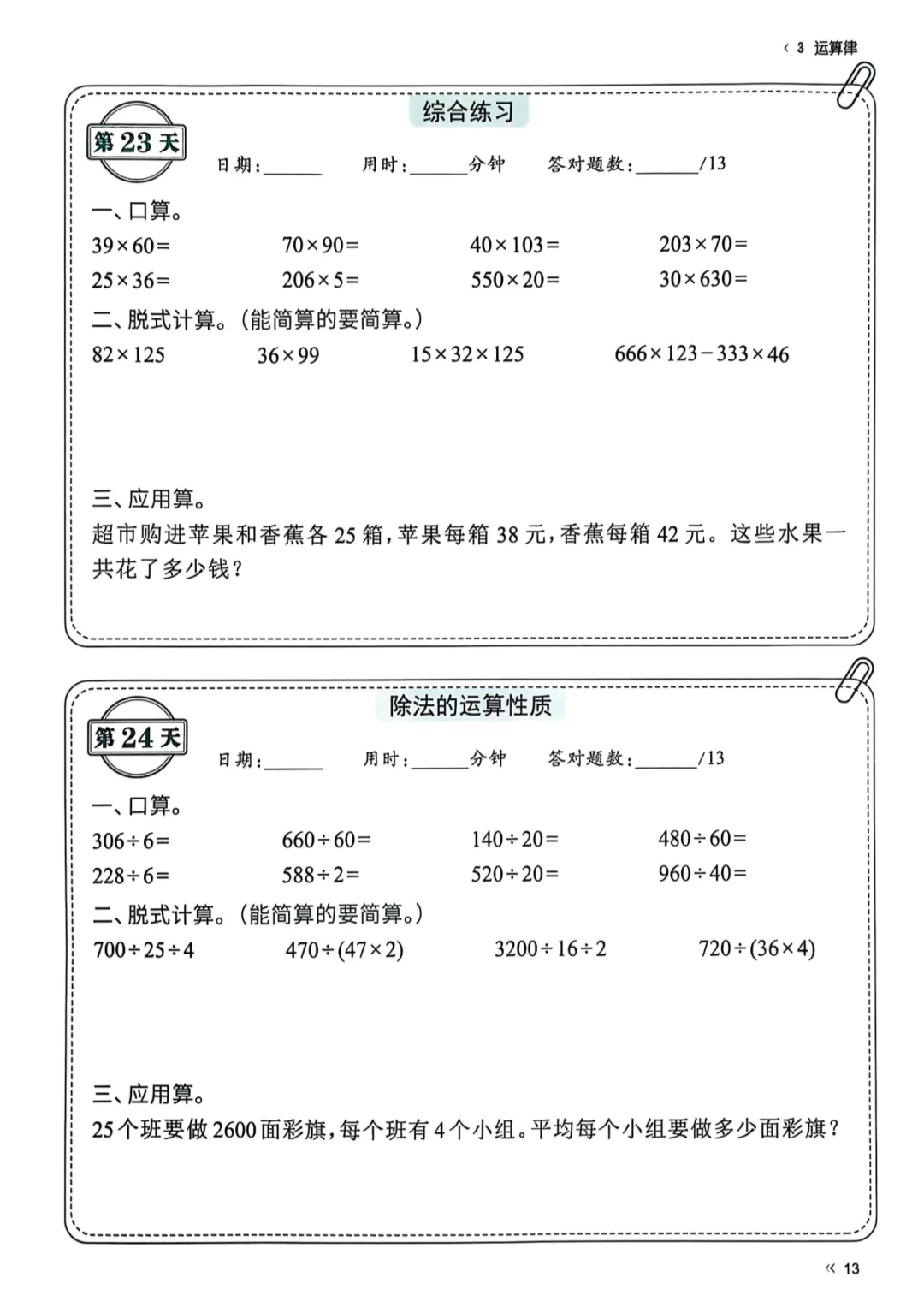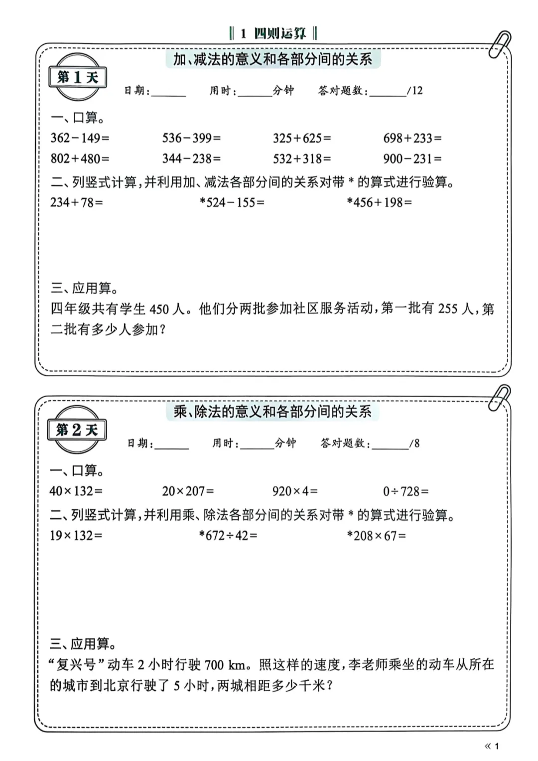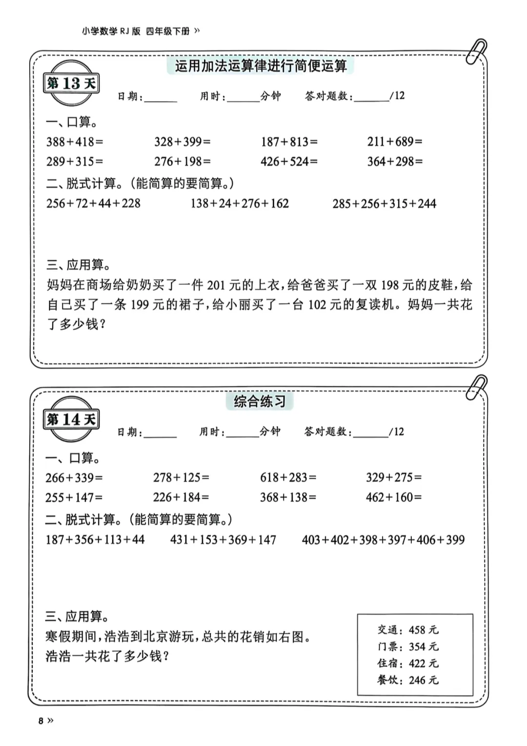 四年级下册数学全册同步一课一练,电子版可保存打印~