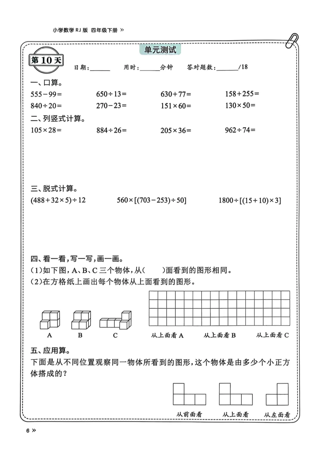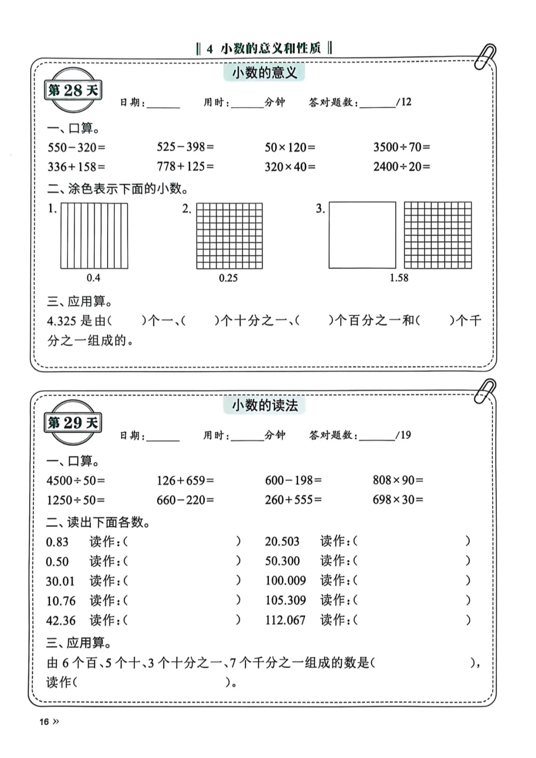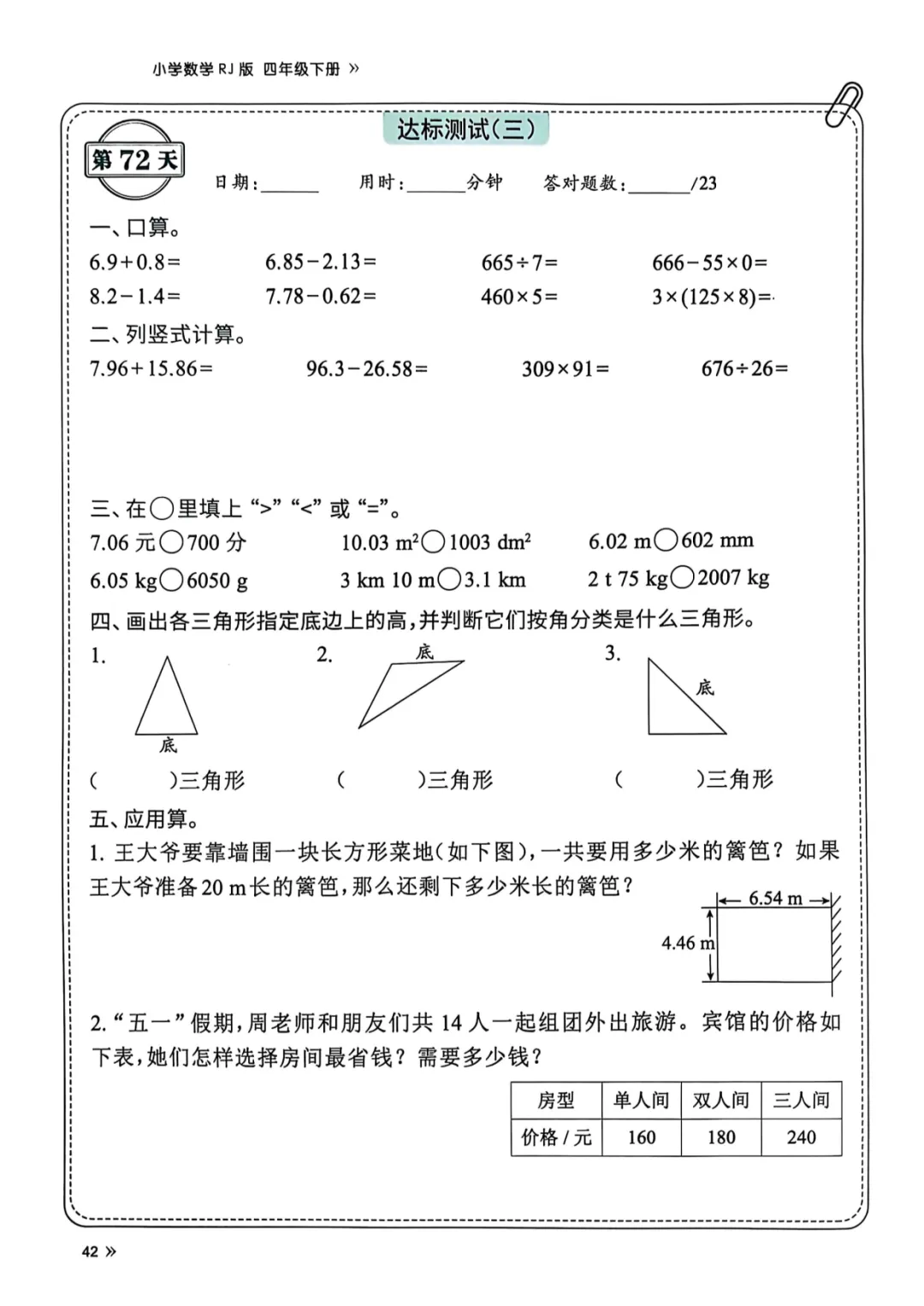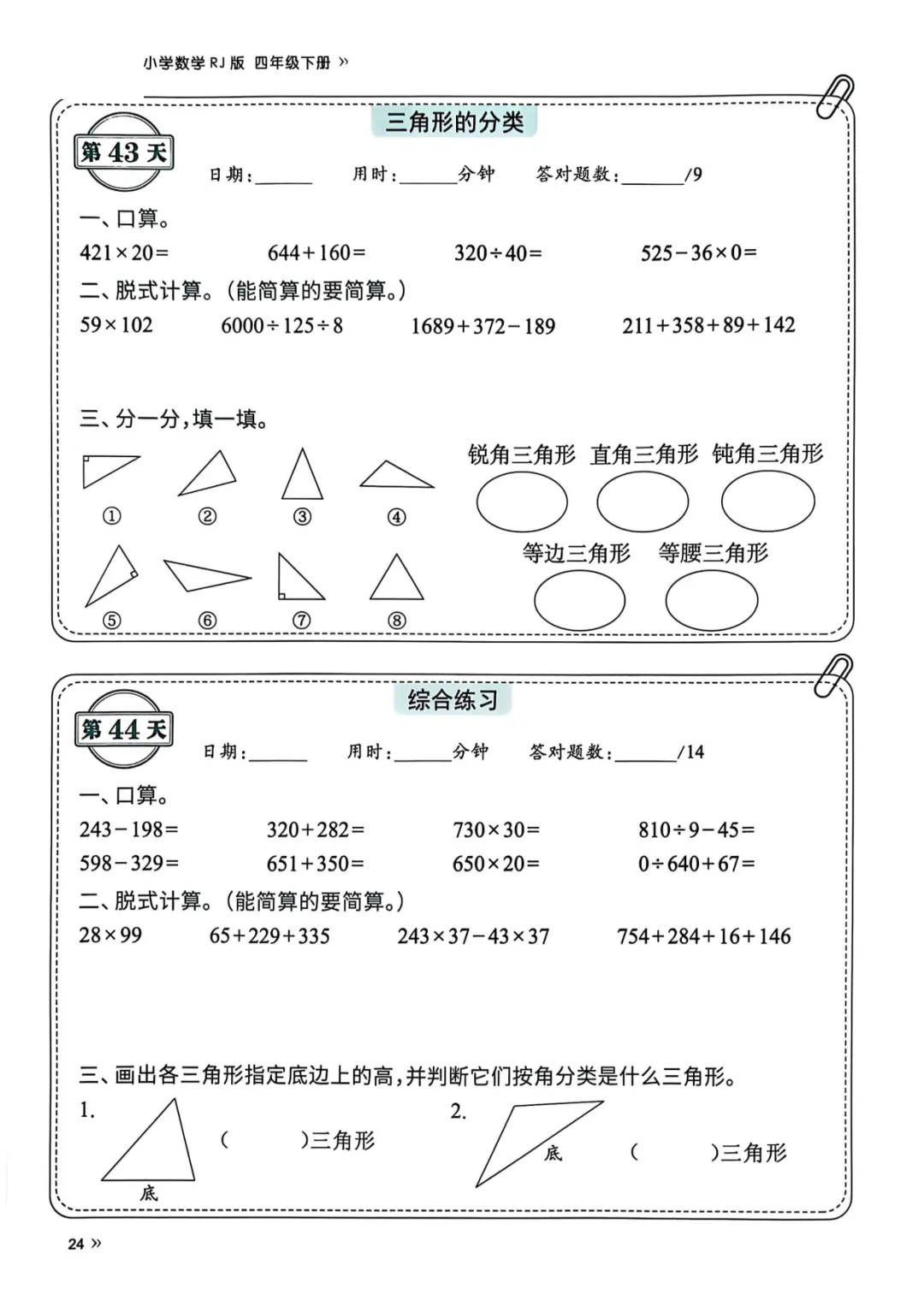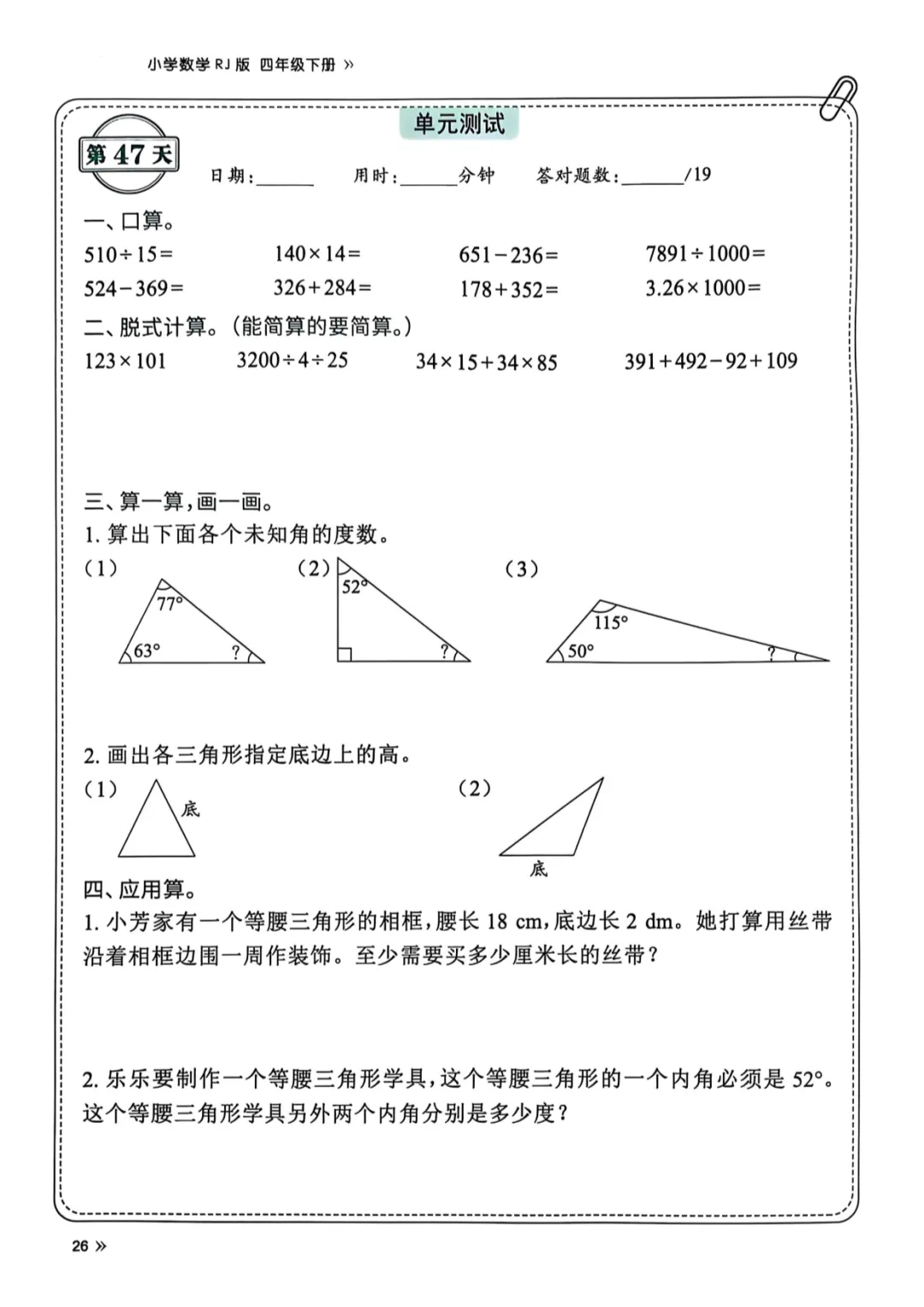 王老师整理了小学四年级下册数学全册同步一课一练,电子版可保存打印~