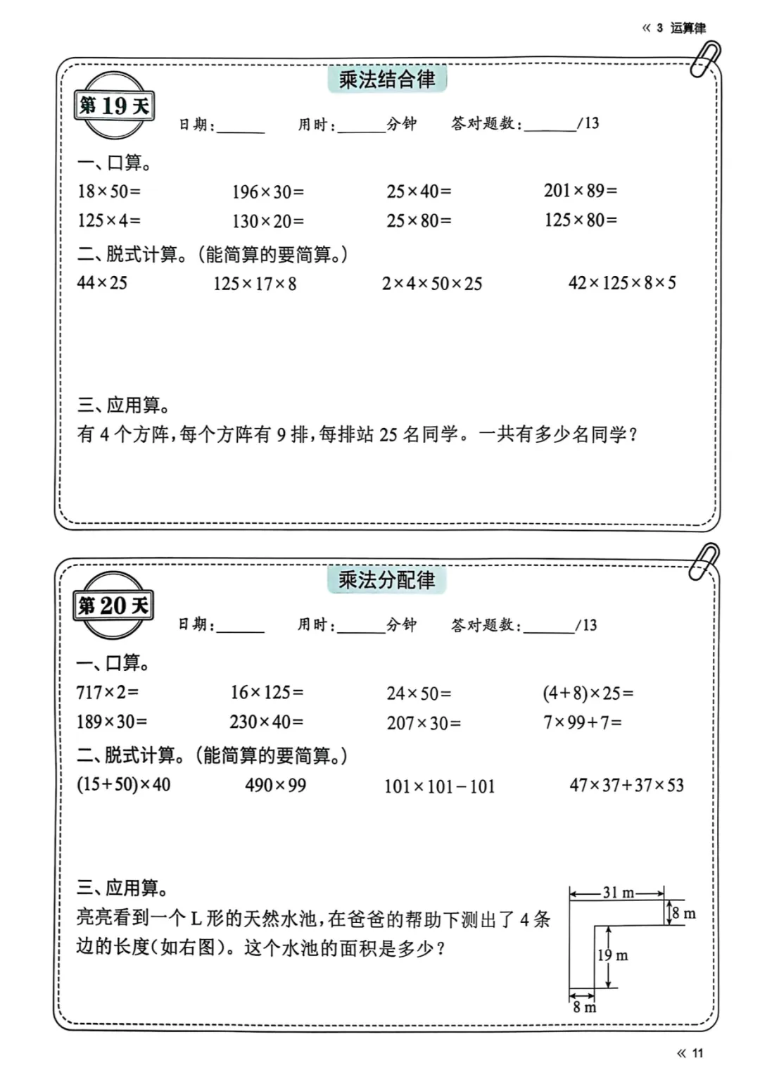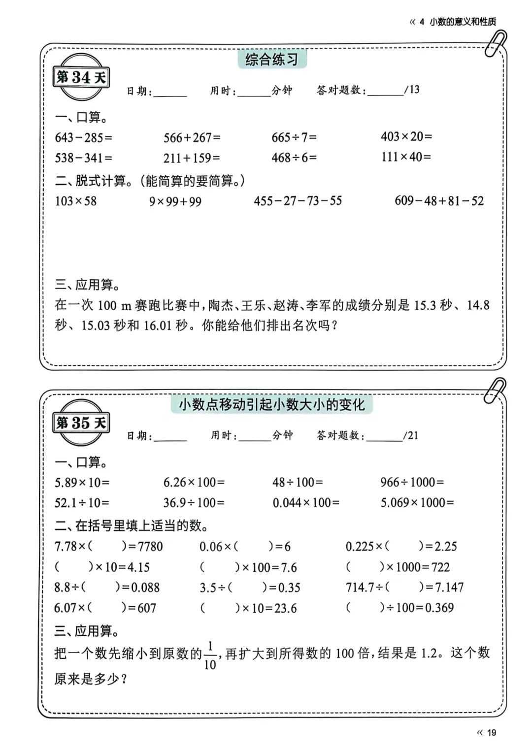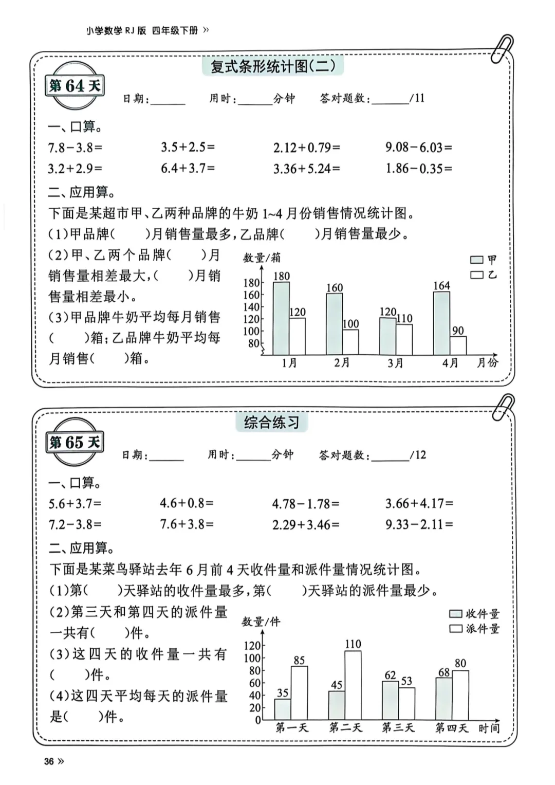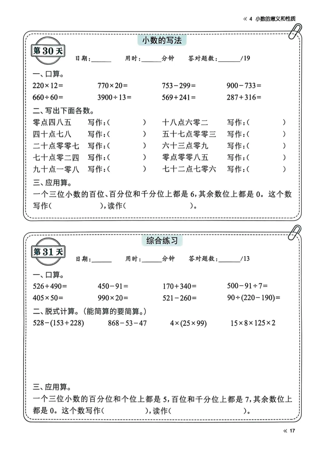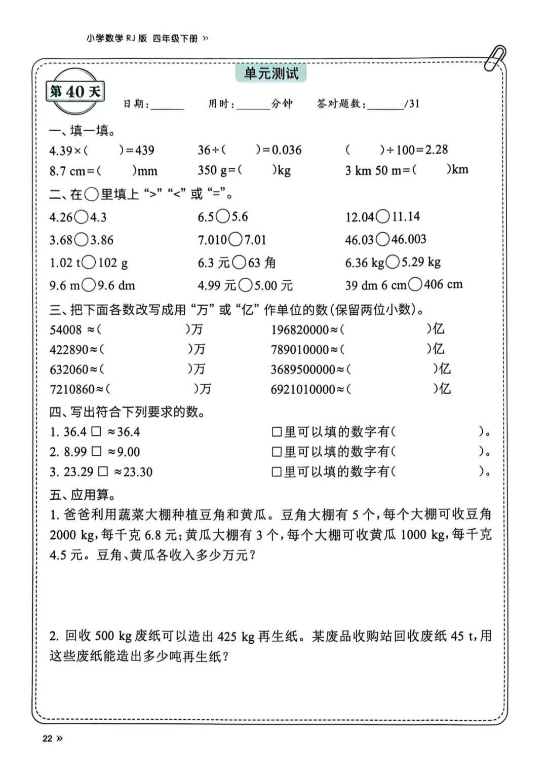 王老师整理了小学四年级下册数学全册同步一课一练,电子版可保存打印~