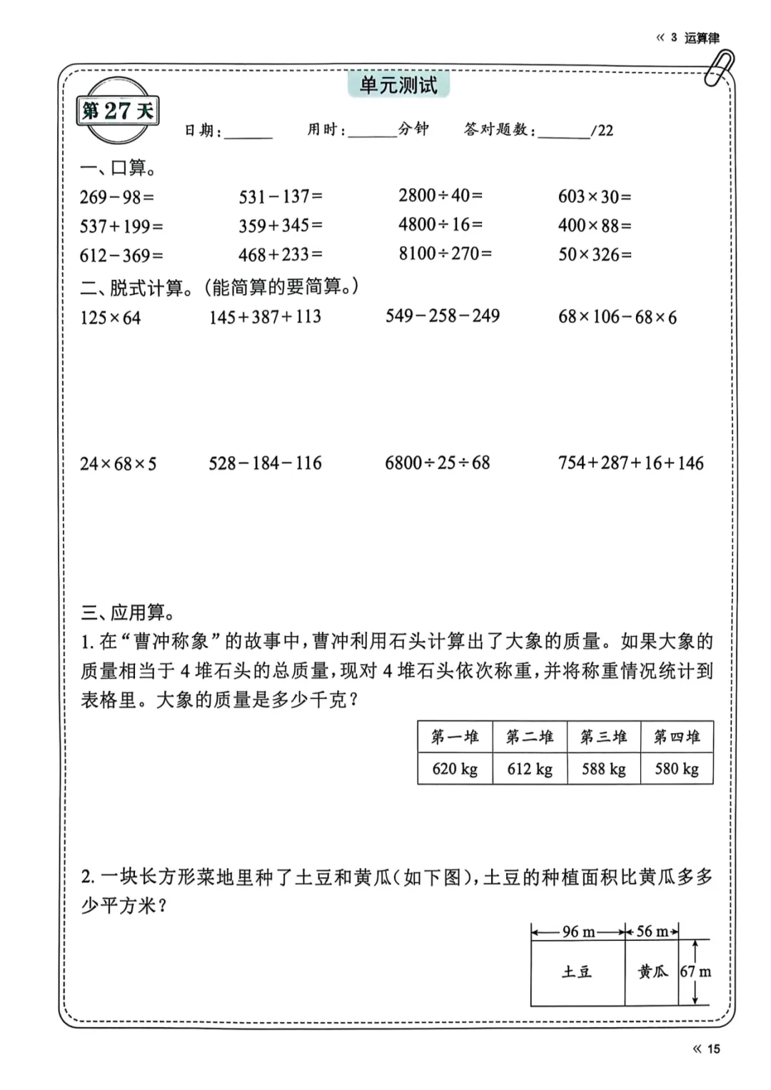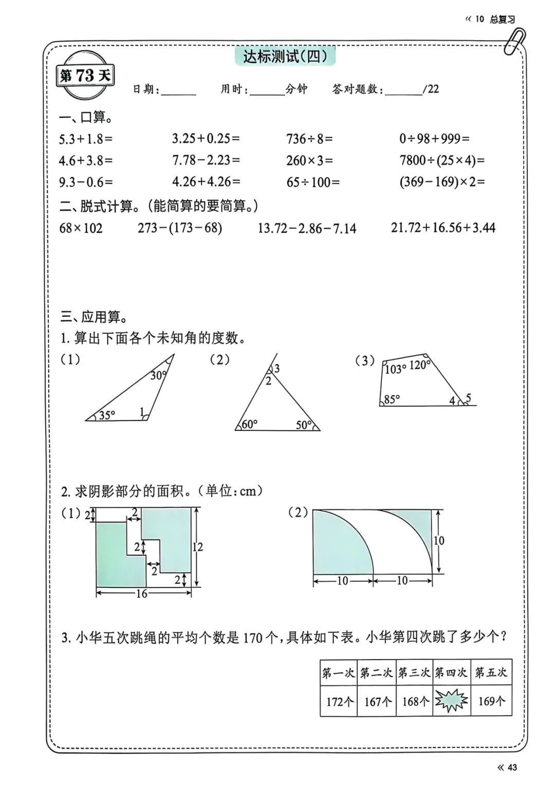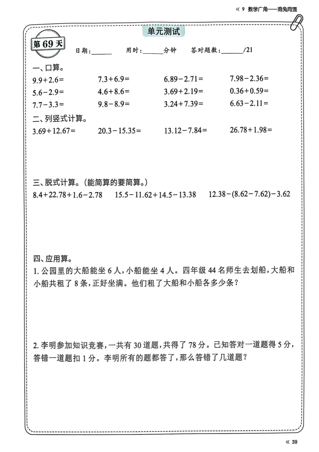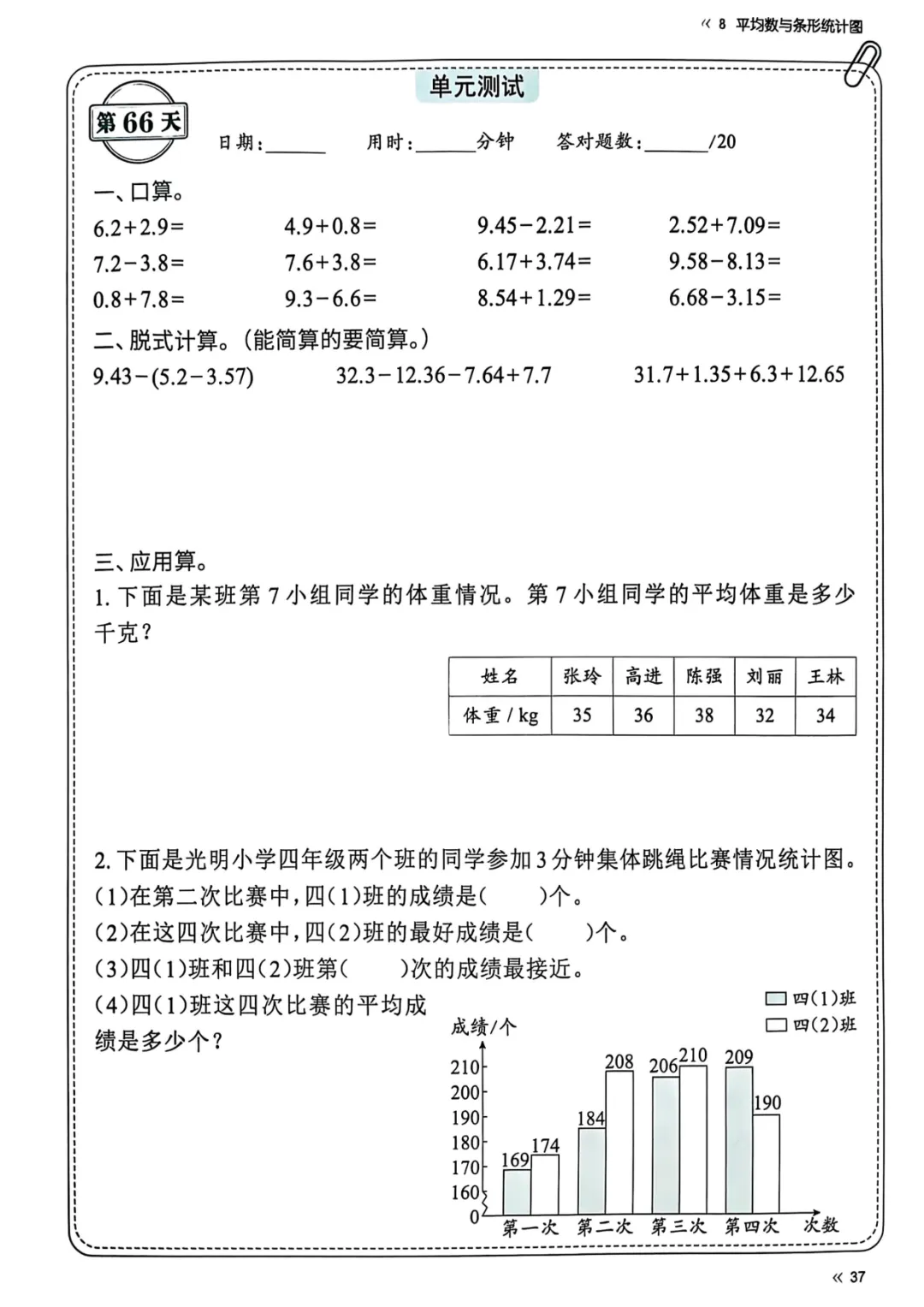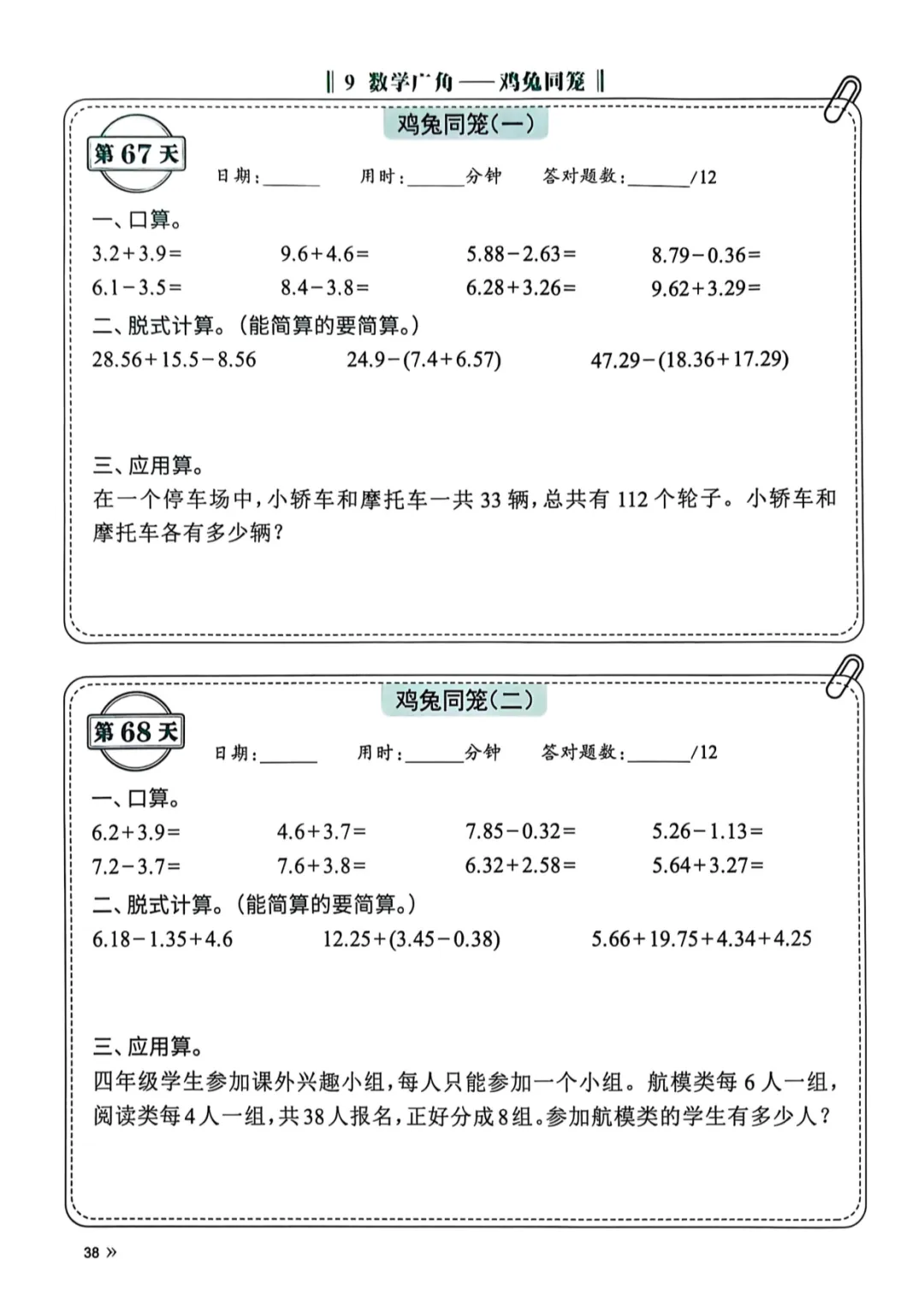 王老师整理了小学四年级下册数学全册同步一课一练,电子版可保存打印~