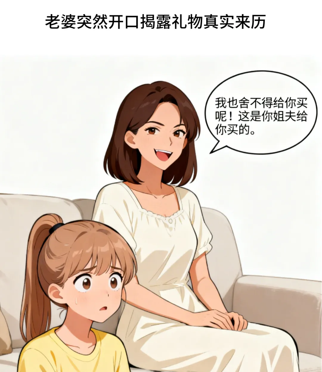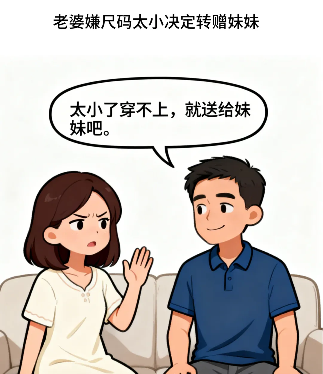 趣味漫画:老公:媳妇,我给你买了件内衣.老婆:太小穿不上,送妹妹吧.妹妹:姐姐真好!老婆:我也舍不得买,这是你姐夫买的.