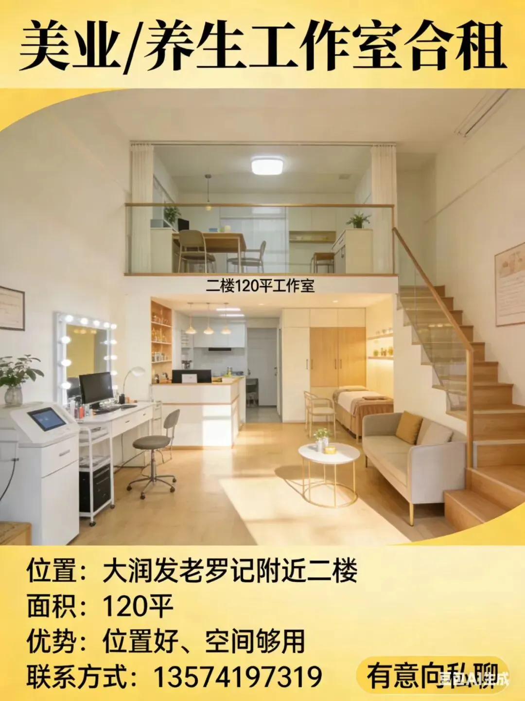 大润发老罗记附近,二楼120平工作室,
