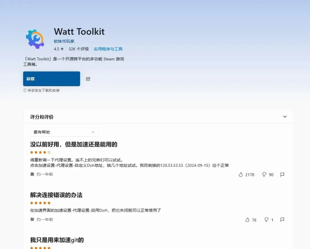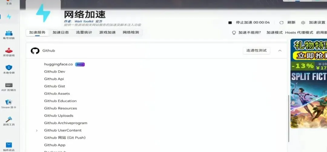 如果你不只是浏览,还经常用Git clone拉代码、下载release包、或者你本身也是个Steam玩家,那强烈推荐你试试 Watt Toolkit(原名 Steam++)。这玩意儿可太香了,堪称网络加速界的“瑞士军刀”。(不过现在最新版还要调一下设置,不然
