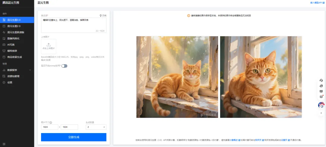 以腾讯混元生图为例(免费、操作简单、生成快):