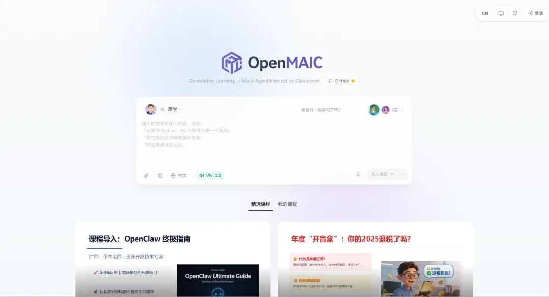 体验课程: https://open.maic.chat/classroom/Pka1GkuPml