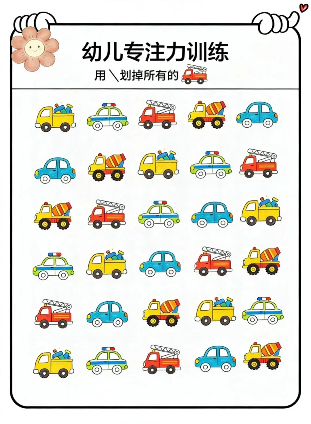 3. 规则执行:理解“划掉目标物”的指令,提升孩子的规则意识和执行力。
