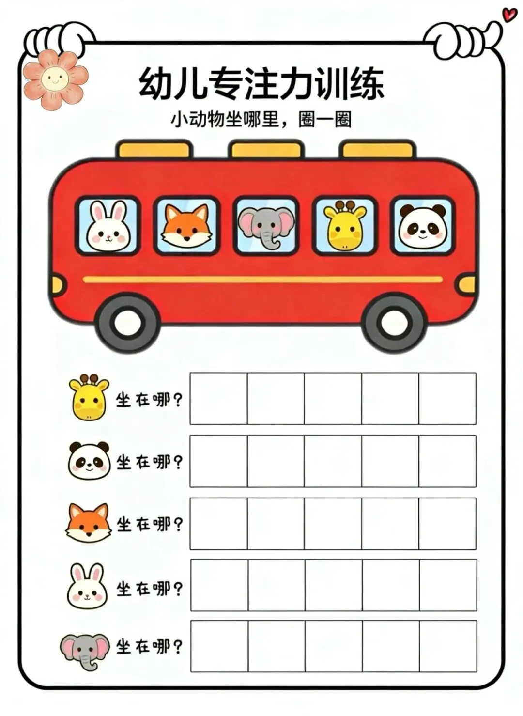 3. 规则理解:明确“圈出对应座位”的指令,提升孩子的规则意识和执行力。