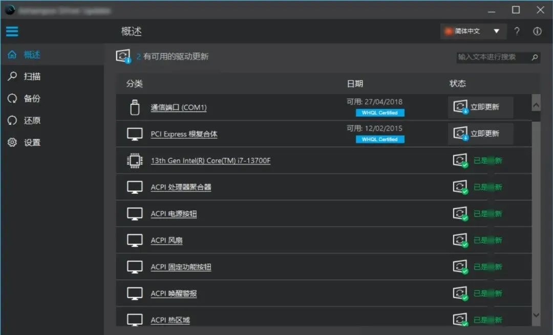 自动备份还原点更新前自动备份当前驱动,万一新驱动不适应,一秒回退,安全无痛。