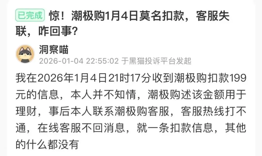 从消费者投诉案例来看,潮极购的扣费链条具备极强隐蔽性。