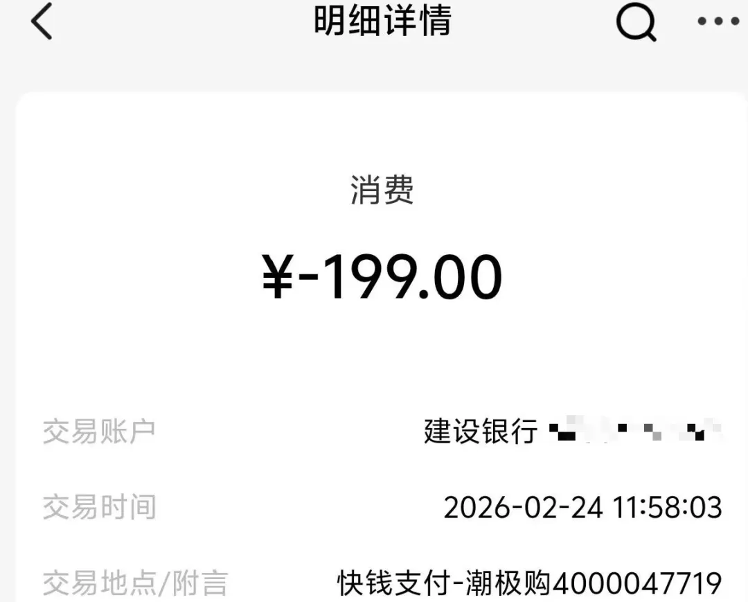 值得注意的是,多名消费者的投诉案例显示,与潮极购平台扣费的关联支付机构为“快钱支付”。