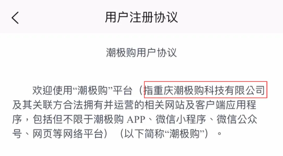 潮极购App平台协议显示,该App由重庆潮极购科技有限公司(本文称“重庆潮极购”)及其关联方拥有并运营。