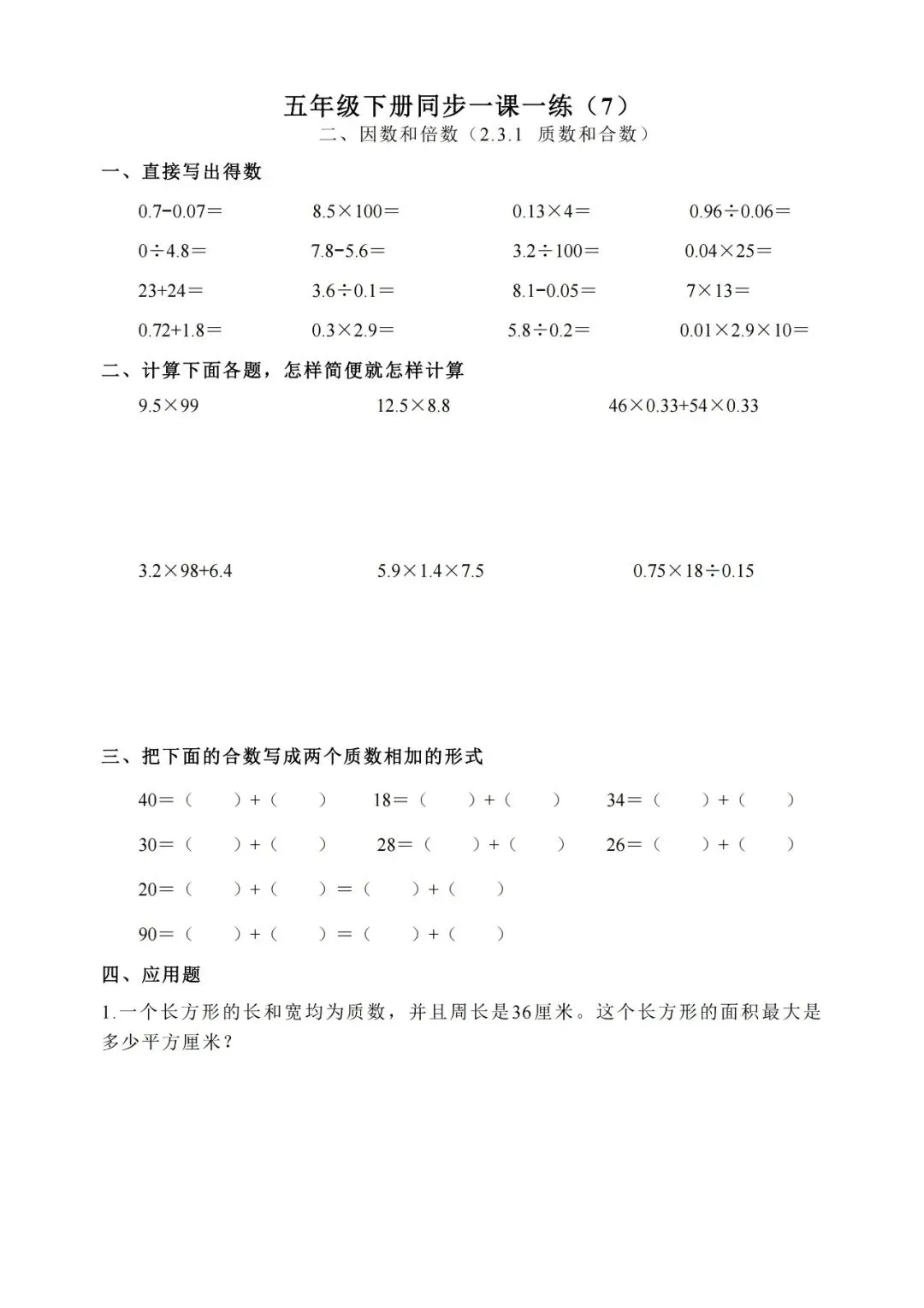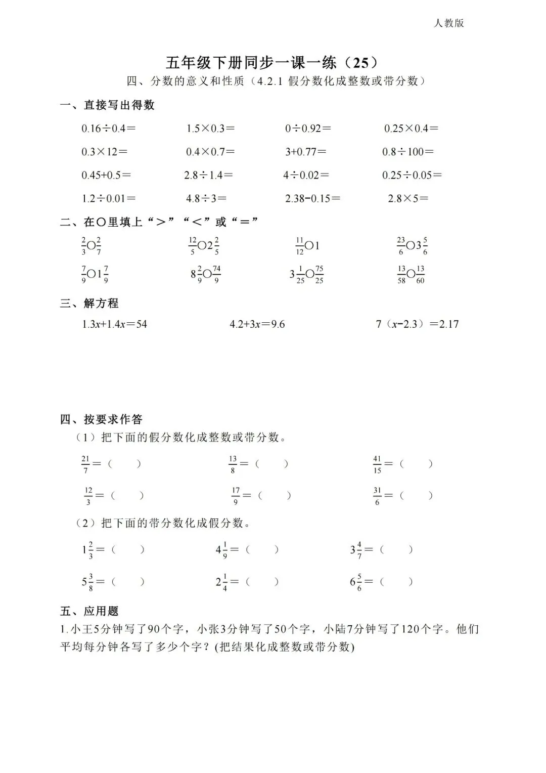 五下 数学跟课每日计算完整版55页/ 电子版可下载打印