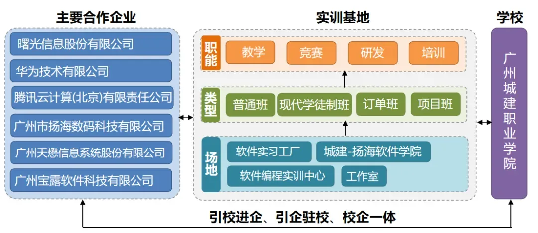与行业龙头企业紧密合作,建设软件技术公共实训中心、软件实习工厂。