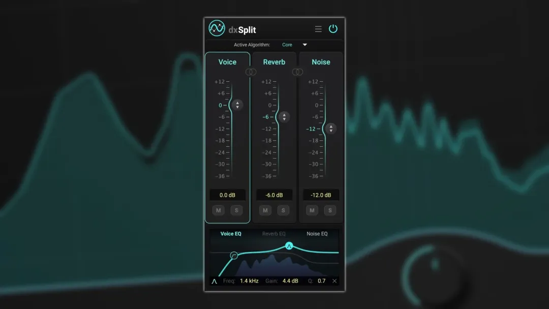将录音拆分为 Voice、Reverb 和 Noise 三个独立部分,实现对白平衡的精细控制。不同于单纯的降噪处理方式,dxSplit 允许用户对对白进行重新平衡、调整空间环境感,并以更高精度削减不需要的背景元素。