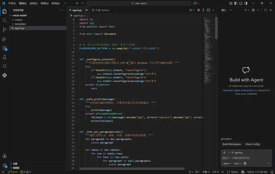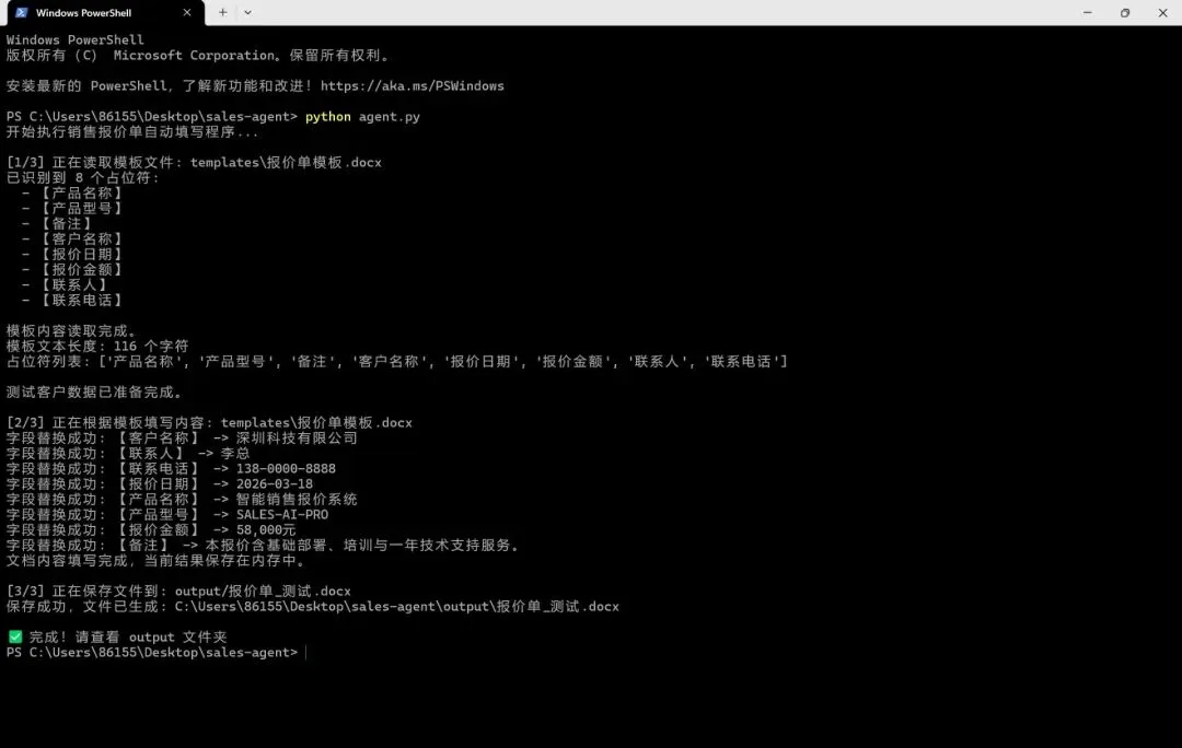 这期学完,你会得到什么? 一个真正能跑的Python程序——你给它一份报价单模板和客户信息,它能自动填好并生成新的Word文档。这可是整个办公Agent的第一块基石。