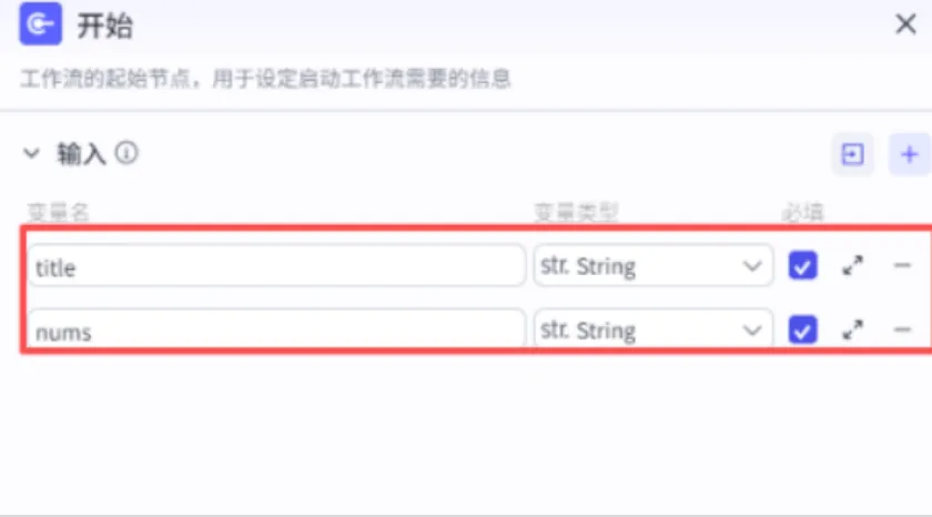 ●输入设置:绑定开始节点的 title和nums -