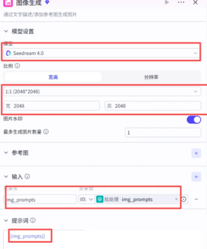 图像生成 1:模型 Seedream 4.0,尺寸 1:1(2048×2048), -