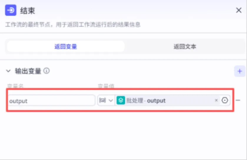 返回类型选择 “返回变量”,最后保存整个工作流,