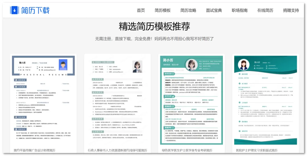 简历下载网是一个简历模板网站,致力于为求职者提供便捷的简历制作服务。