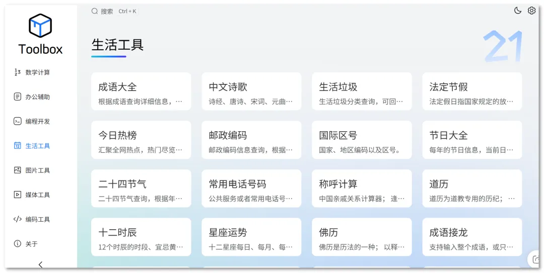 它无需登录即可使用,界面简洁,操作便捷,涵盖了众多实用工具,如文件处理、数据转换、系统优化等,功能丰富。总体而言,Toolbox以其安全性和便捷性,成为用户日常办公和数据处理的好帮手。