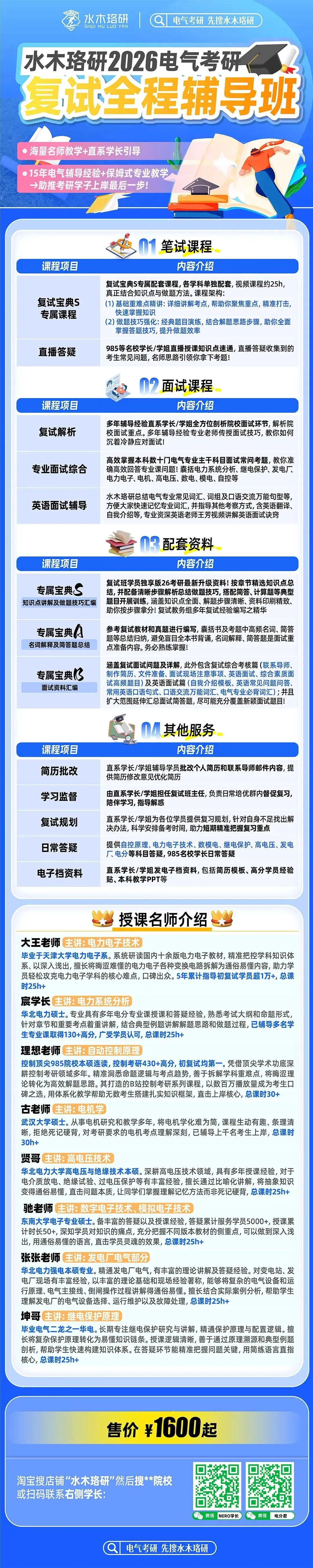 2026复试决战在即,水木珞研电气考研复试辅导班,愿做你最坚实的后盾。海量名师教学+直系学长引导,15年电气辅导经验+保姆式专业教学,助推考研学子上岸最后一步!