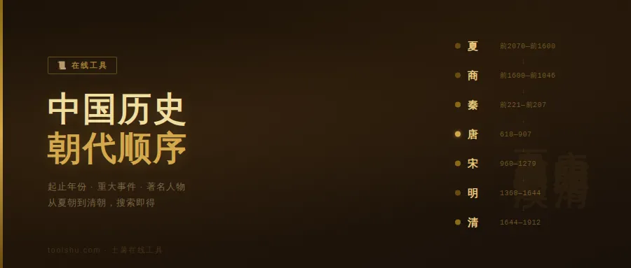 👉 查中国历史朝代顺序和年份:https://toolshu.com/dynasties