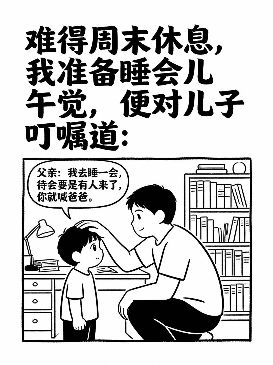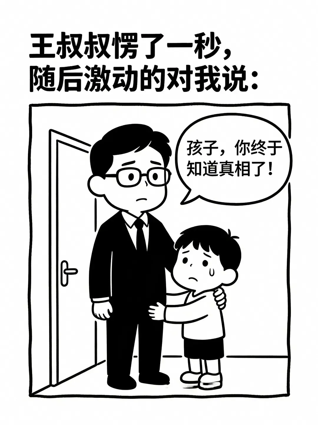 逗笑漫画:我对儿子说:我去睡一会,待会要是有人来了就喊爸爸.过了一会,王叔叔来了,儿子:爸爸!王叔:孩子,你终于知道真相了