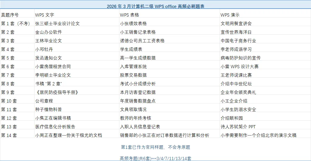 2026年3月计算机二级WPS|14套高频题来了