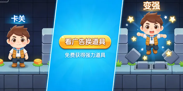 把广告点设计成用户的主动选择——当用户卡关时、想变强时,给一个看广告换道具的入口。这样用户不仅不反感,还会感谢你给了他一个“免费变强”的机会。这是IAA小游戏留存优化的核心心法。