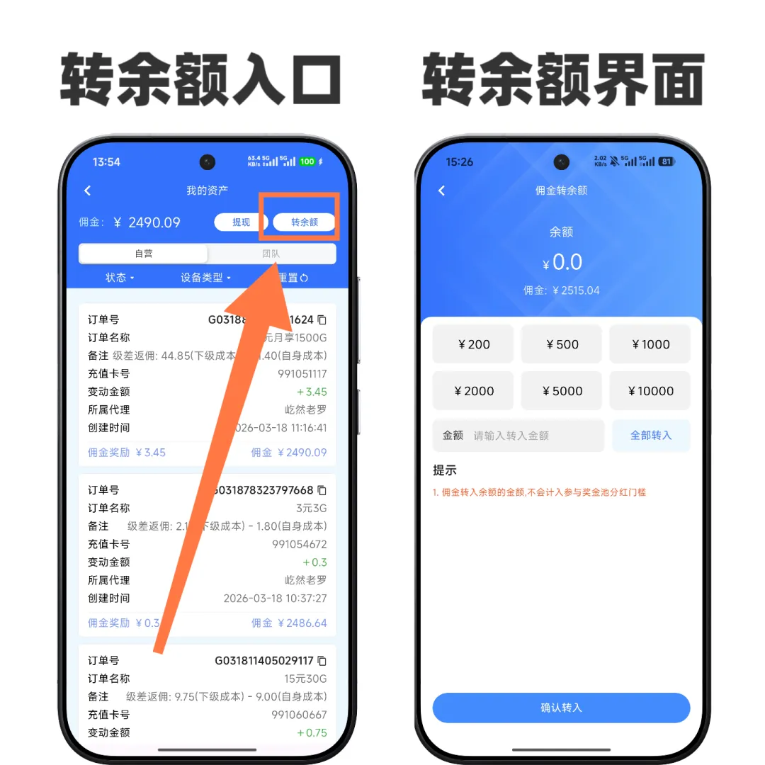 注意:佣金转入余额的金额,不会计入参与奖金池分红门槛