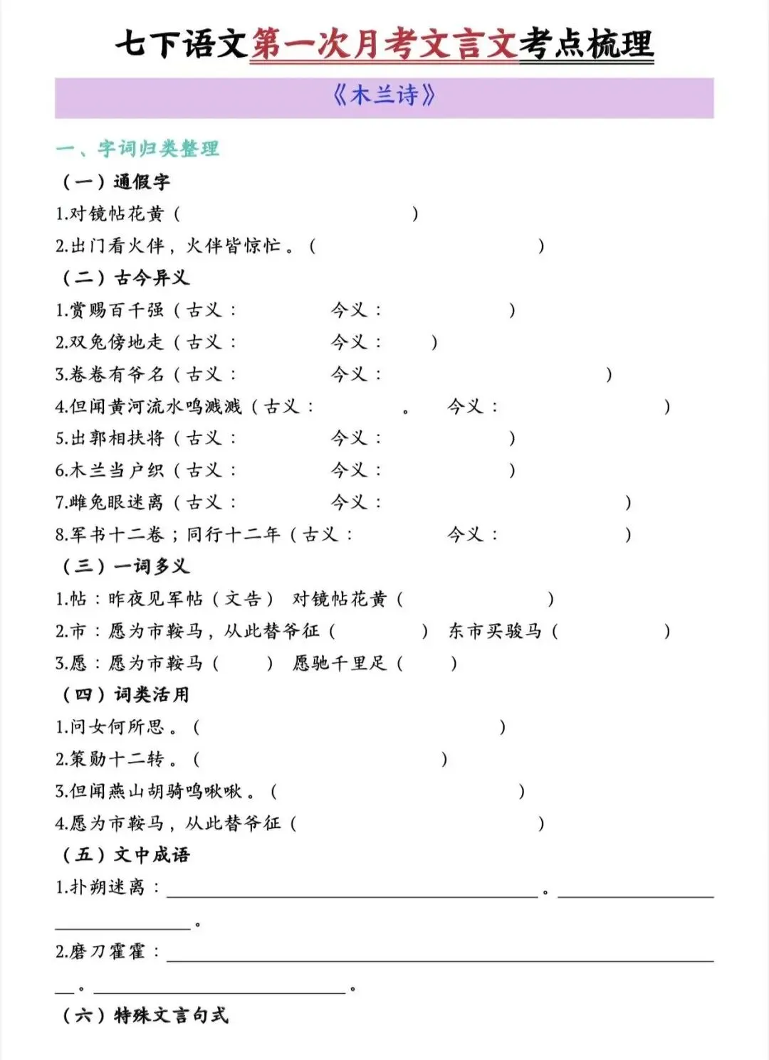 七年级下语文第一次月考文言文考点梳理/电子版可打印 以下为部分截图,具体看完整PDF文件 (温馨提示:文末有电子版领取方式) 领取完整电子版: ①:点一点右下角的“赞”和“在看”,感谢支持! ②:点击“关注”,回复资料领取