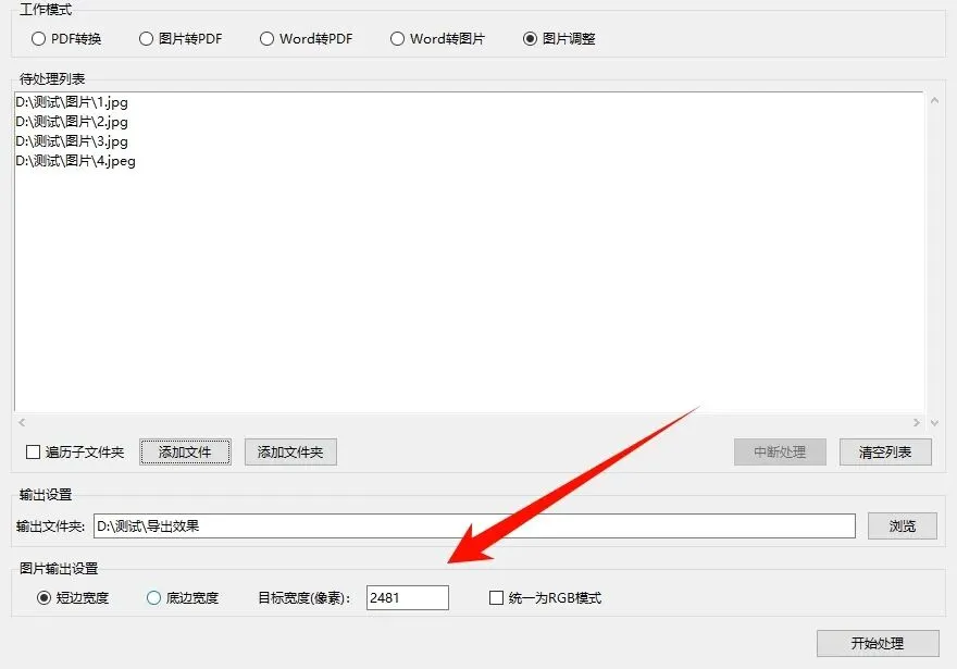 批量图片尺寸调整功能里面,添加图片文件和输出文件位置,在图片输出设置里面,选择尺寸和像素,支持遍历所有子文件夹里面的所有图片。