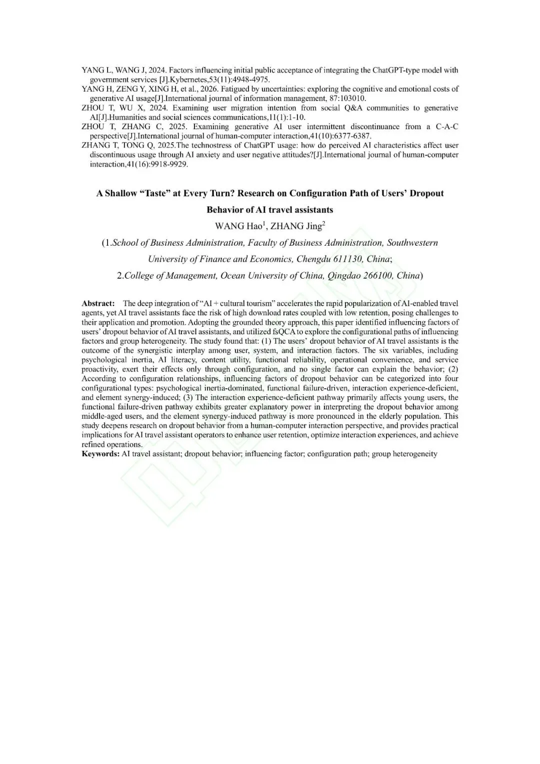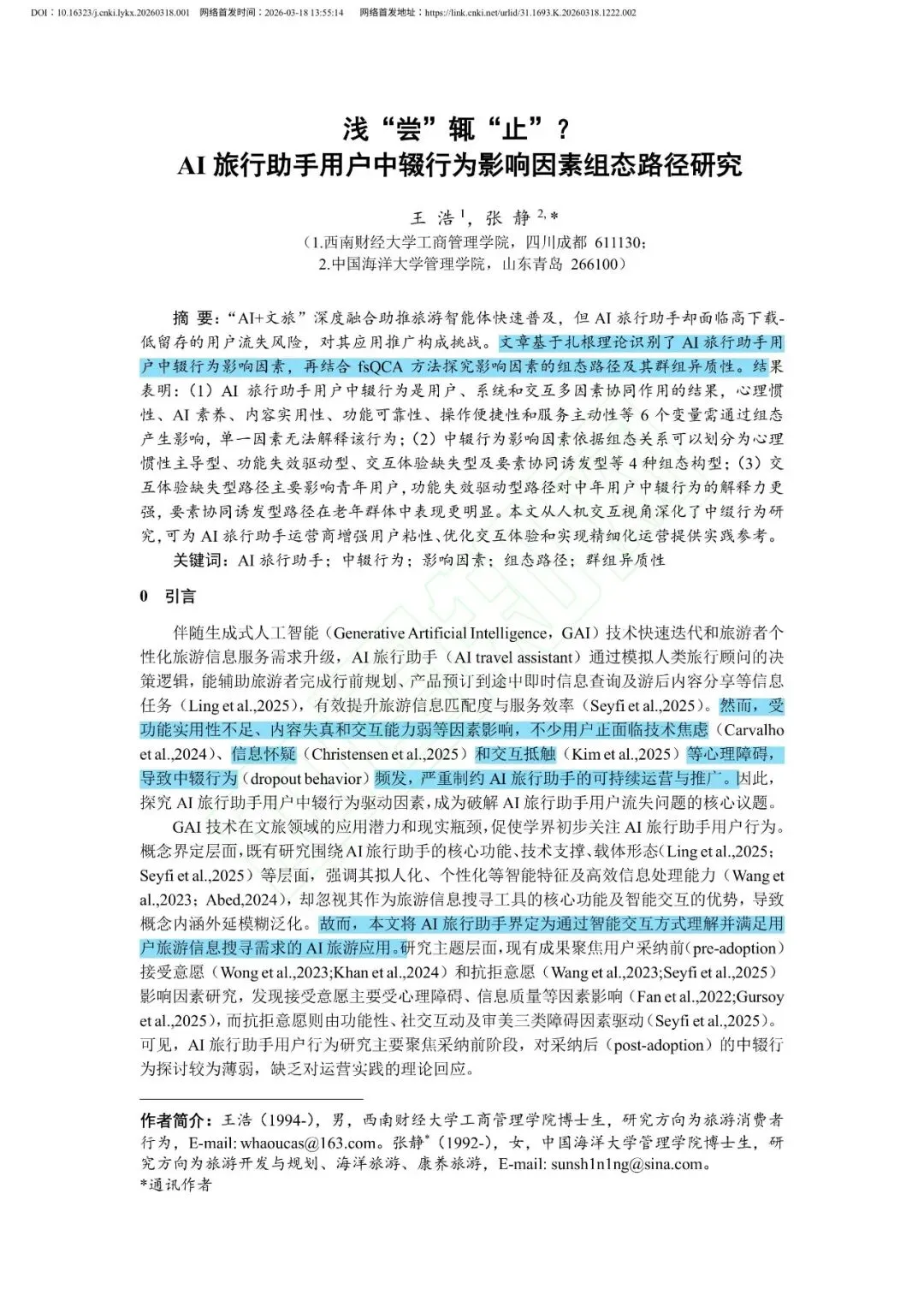 浅“尝”辄“止”?AI旅行助手用户中辍行为影响因素组态路径研究