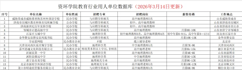 资环学院教育行业用人单位数据库