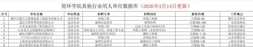资环学院其他行业用人单位数据库