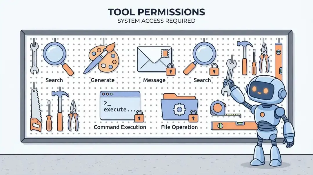 Agent 能调工具就意味着能产生副作用——写文件、发消息、跑命令。安全策略不是可选的。