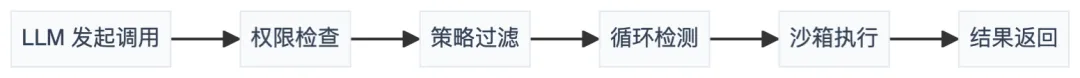 工具不是 LLM 说调就能调的,每次调用都要过一条管线: