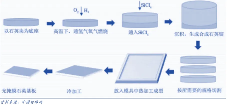 在半导体制造中,光刻环节必须使用合成石英玻璃,而硅片拉制、刻蚀清洗等环节则大量使用天然石英玻璃制品;