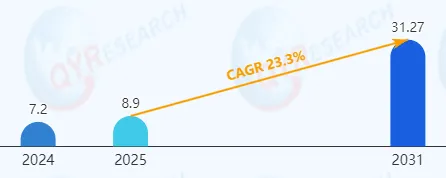 根据QYResearch调研显示,石英纤维布在2025-2031期间年复合增长率(CAGR)为23.3%,如下(单位亿美元):