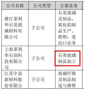 子公司上海菲利华石创的石英玻璃器件加工通过了中微半导体设备(上海)股份有限公司和北方华创科技集团股份有限公司等国内主流半导体设备厂商认证;