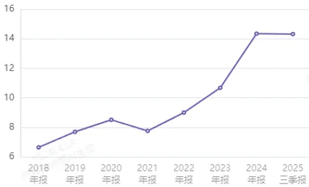 存货逐年上升,2025年3季度明显存货大量上升,差不多是9.5亿左右,2024年底是7.4亿,同比增长了30%左右,2025年第4季度业务就开始爆发了,这点存货其实增长的不多;