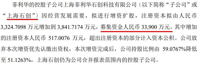 2025年7月,子公司增资扩股3.4亿(产业投资基金):