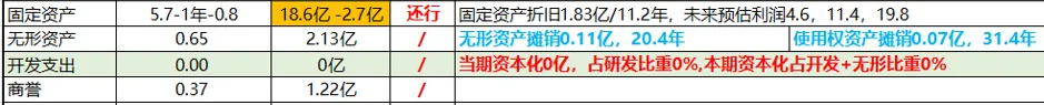 2024年公司的固定资产18.6亿,在建工程2.7亿,2025年3季度来看固定资产是21.8亿,在建工程是2.3亿,差不多多了3个亿左右,扩产速度还是可以的,无形资产2.1亿,商誉1.2亿,这些差不太多;