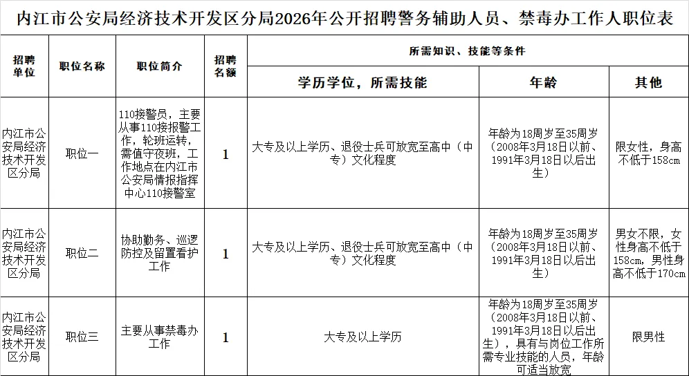 内江市公安局经济技术开发区分局面向社会招聘警务辅助人员公告