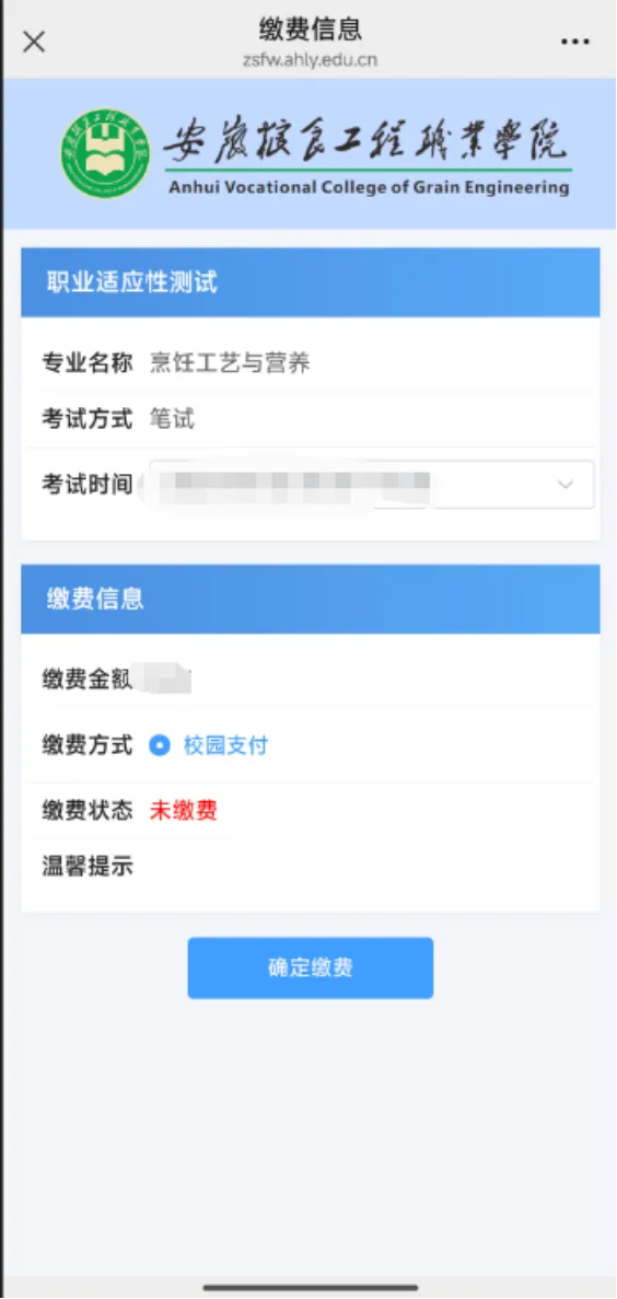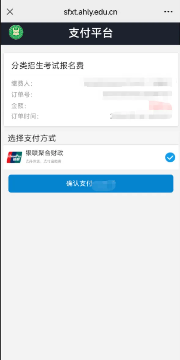 (1)在平台首页上选择“考试预约缴费”完成缴费流程,平台根据你的报考信息生成对应的校考信息,缴费方式选择“校园聚合支付”(支持微信和支付宝),点击“确认缴费”按键完成缴费流程。