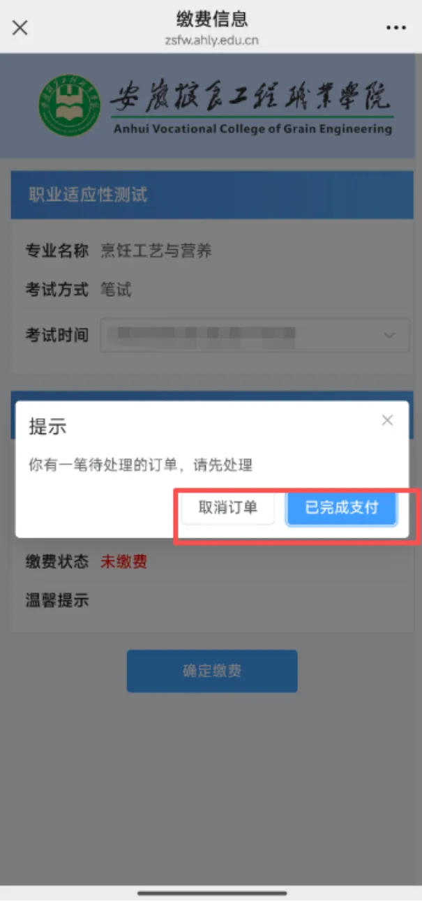 (2)缴费完成后,需要重新登录平台,系统自动刷新缴费报名信息,显示缴费状态,缴费成功扣款后,系统显示未缴费,请不要重复缴费,系统自动检测未完成订单,请按照提示操作,如无法解决,请联系招生办后台管理老师。