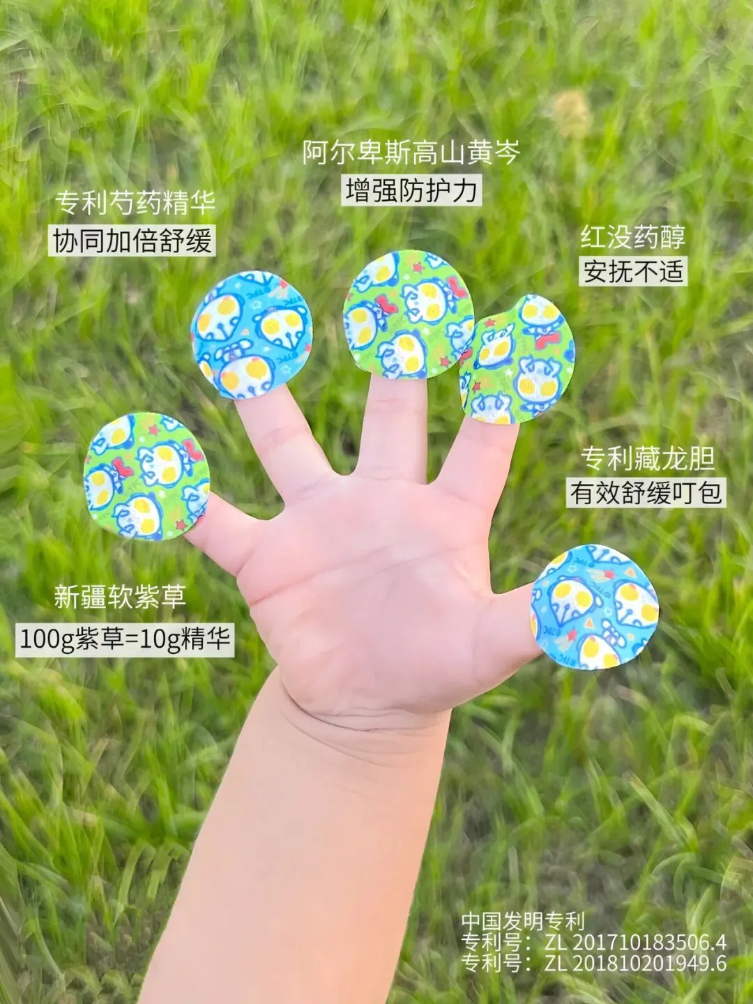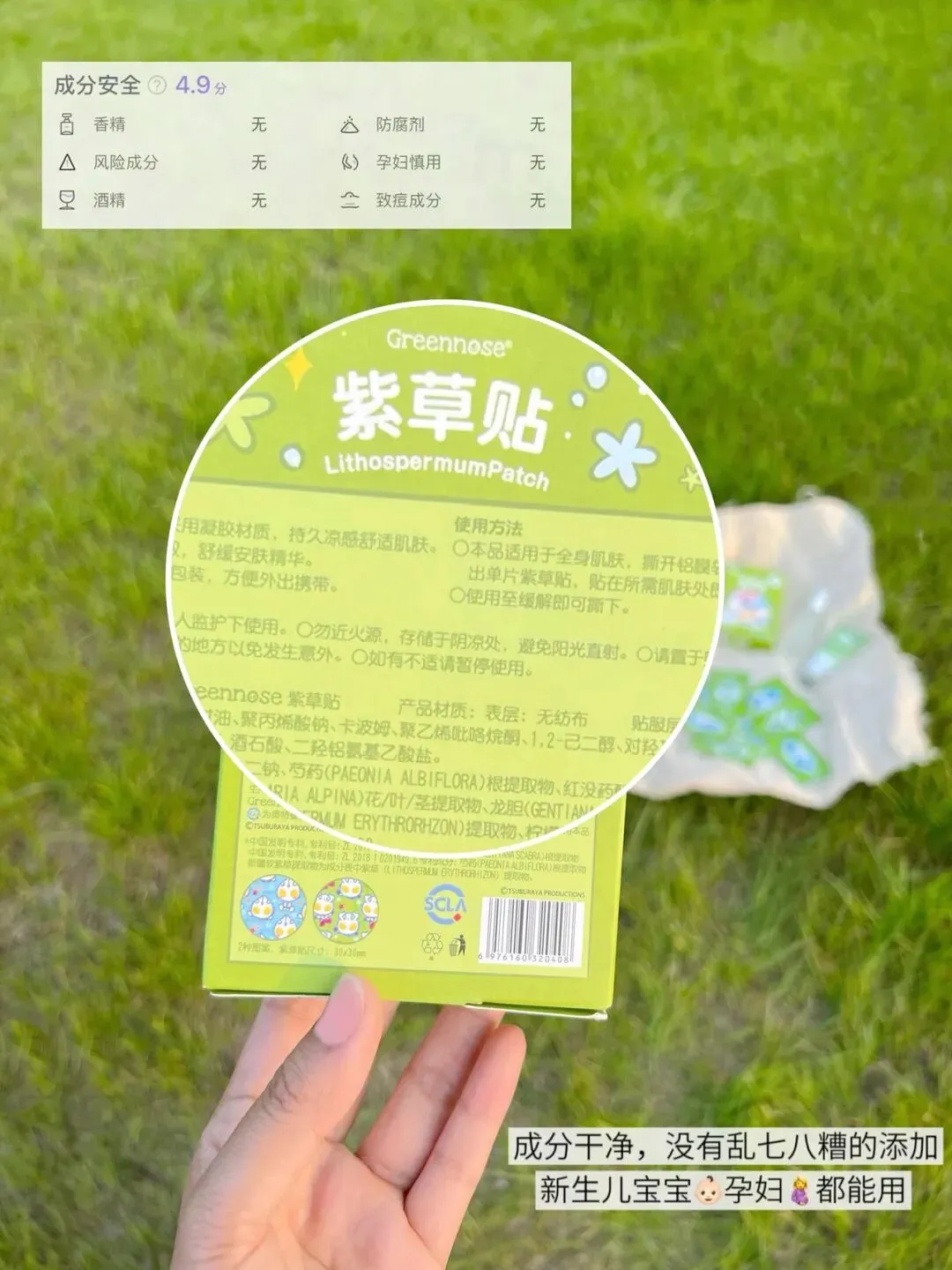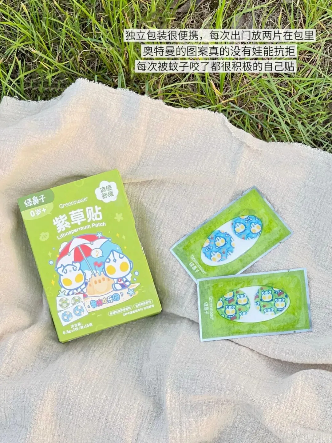 【绿鼻子 紫草贴】它里面含有黄芪、红没药醇、软紫草、龙胆根、芍药精华等成分,可以即刻缓解被叮咬的不适而且贴面是水凝胶这种质地本身就是有一定的清凉镇定作用还能将成分持续稳定的渗透到皮肤里持续舒缓4小时左右
