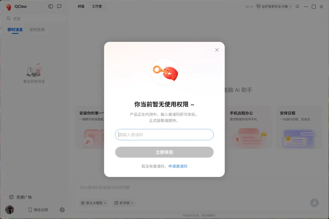 关注腾讯“龙虾”系列AI产品已有一段时间,前阵子刚体验过WorkBuddy,今日上午意外收到QClaw的内测邀请码,便迫不及待地计划晚上回家解锁这款新工具。作为腾讯电脑管家团队基于OpenClaw封装的产品化版本,QClaw主打零门槛体验,实际试用下来,确实带来了不小的惊喜。