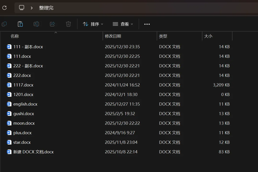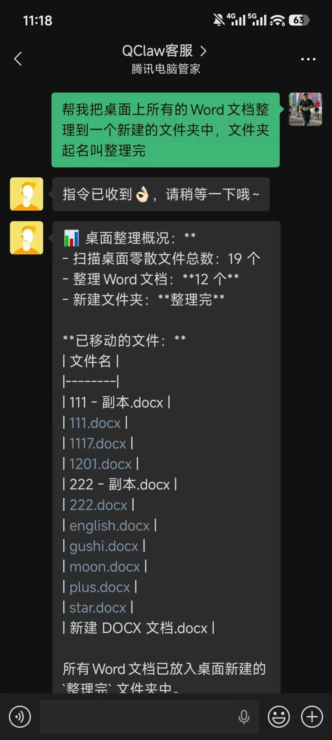 桌面整理:要求将桌面上所有Word文档整理到名为“整理后”的新文件夹中,QClaw快速执行,整理后文件分类清晰,没有遗漏或误放;