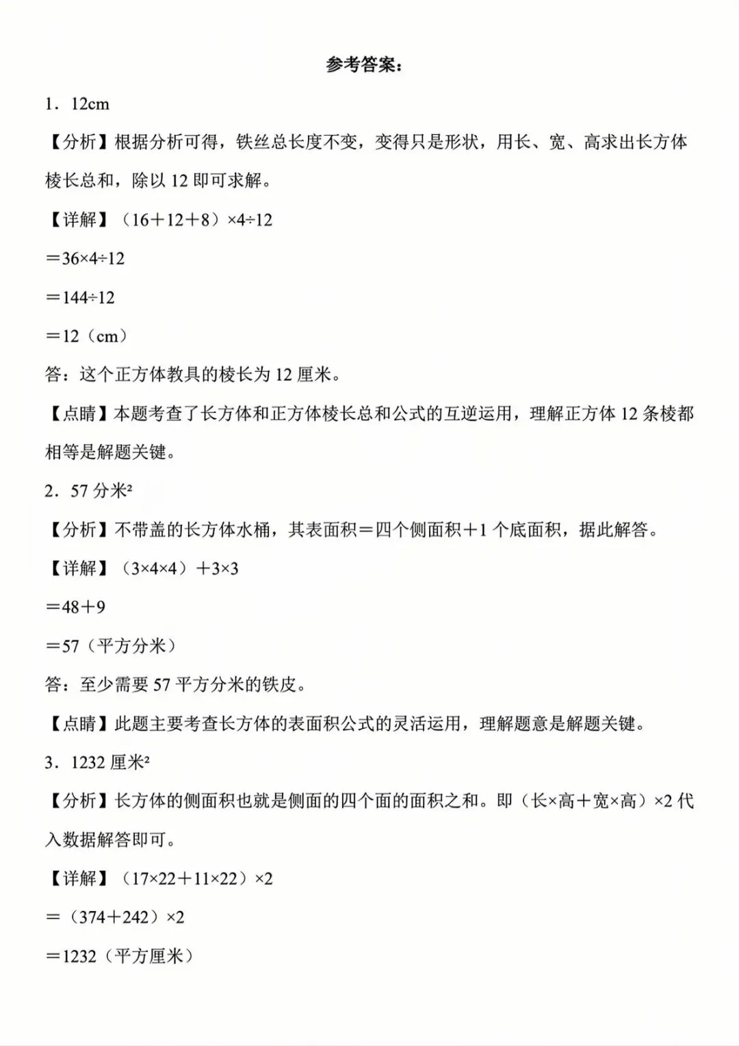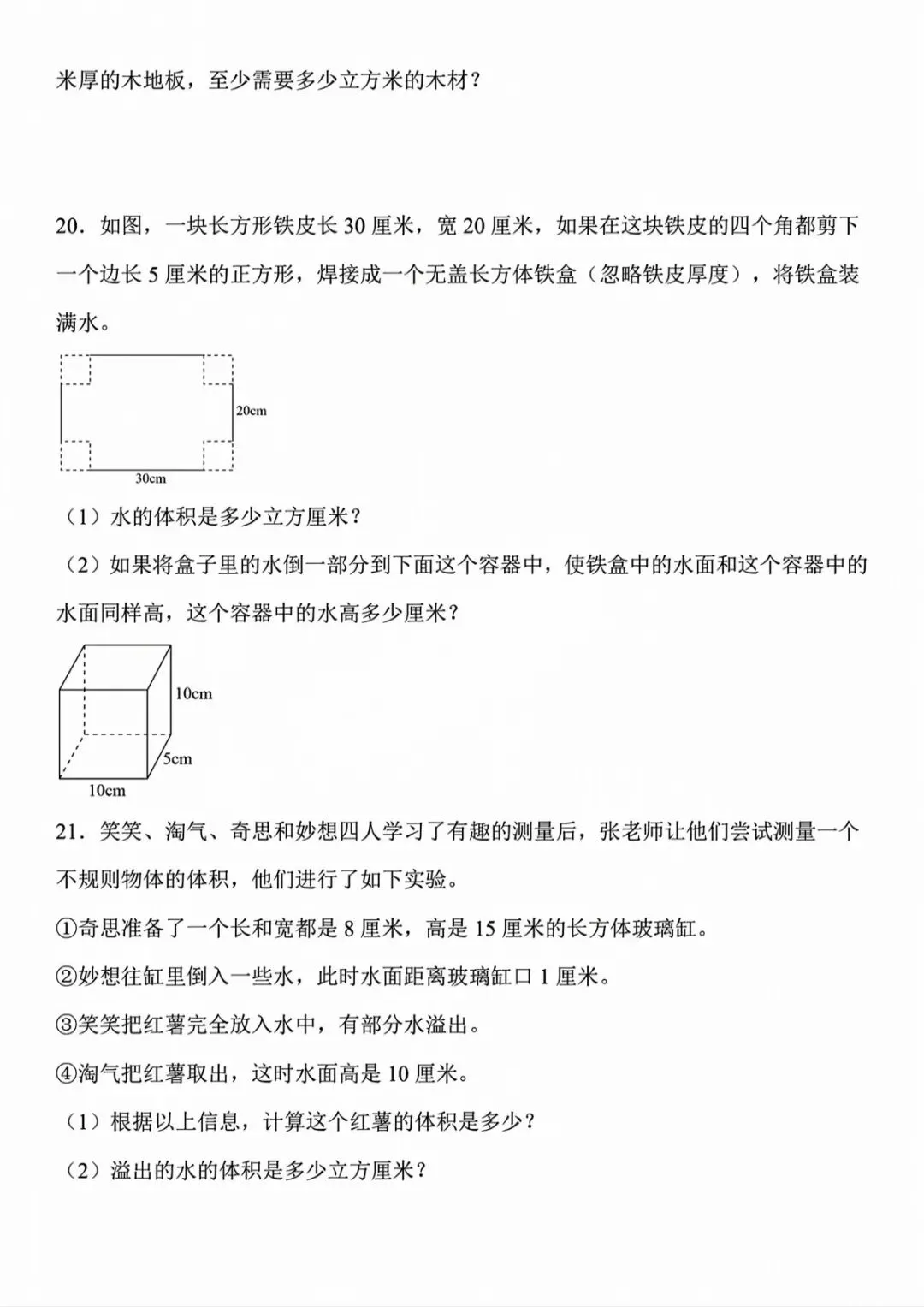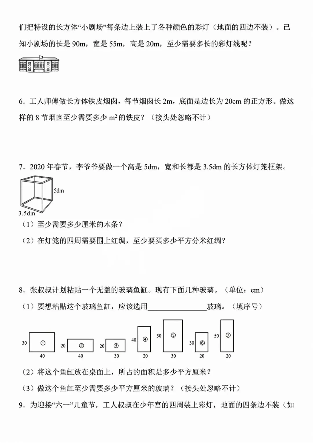 可下载丨26春五年级下册数学长方体和正方体易错应用题,电子版